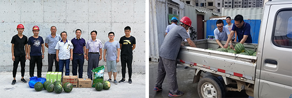 慰問組帶著對(duì)辛勤奮戰(zhàn)在一線職工的深切關(guān)心與愛護(hù),每到一個(gè)工地,都會(huì)詳細(xì)察看、詢問工程建設(shè)情況,強(qiáng)調(diào)高溫天氣下的安全生產(chǎn),叮囑有關(guān)負(fù)責(zé)人合理調(diào)整勞動(dòng)作業(yè)時(shí)間,做好后勤保障工作,加強(qiáng)對(duì)飲用水、食品和工地食堂的衛(wèi)生管理,確保一線人員身體健康。同時(shí),慰問組為各項(xiàng)目部送去了茶葉、綠豆、白糖、西瓜、毛巾、香皂等防暑降溫品,把清涼送到了一線人員的心坎上。各項(xiàng)目部一致表示,將按照公司領(lǐng)導(dǎo)的要求,認(rèn)真做好安全生產(chǎn)工作和施工現(xiàn)場(chǎng)防暑降溫工作,確保工程建設(shè)順利開展。